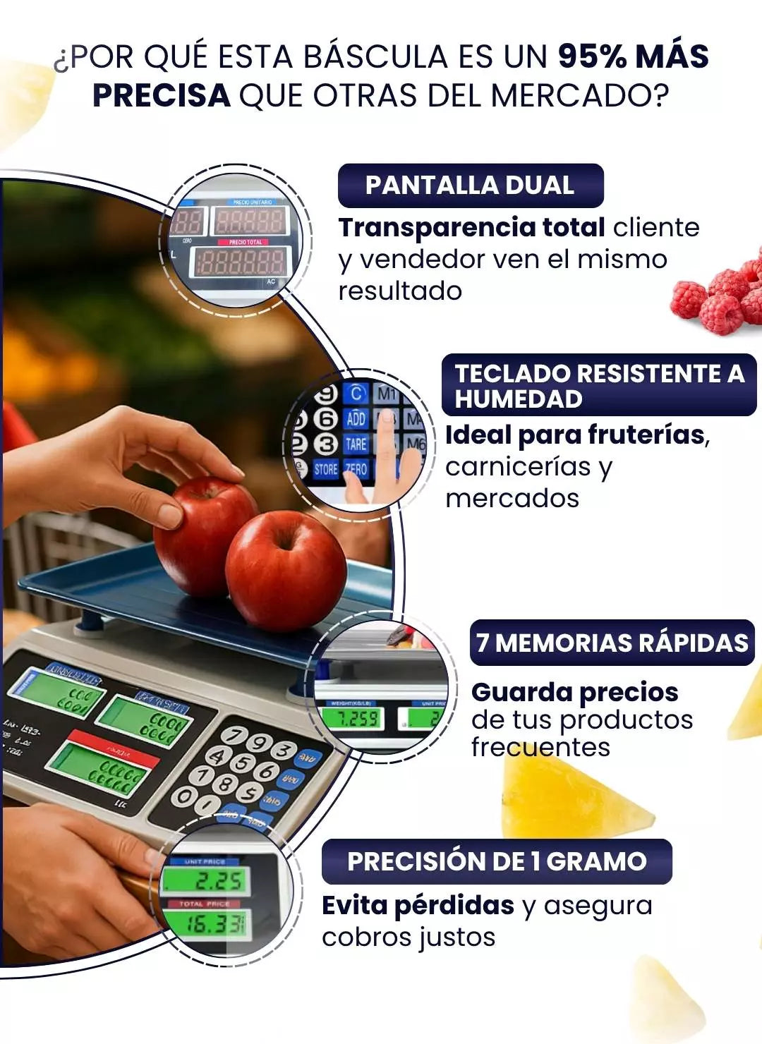 ⚖️ Mediciones exactas sin margen de error – controla tus ventas con total fiabilidad gramo a gramo.