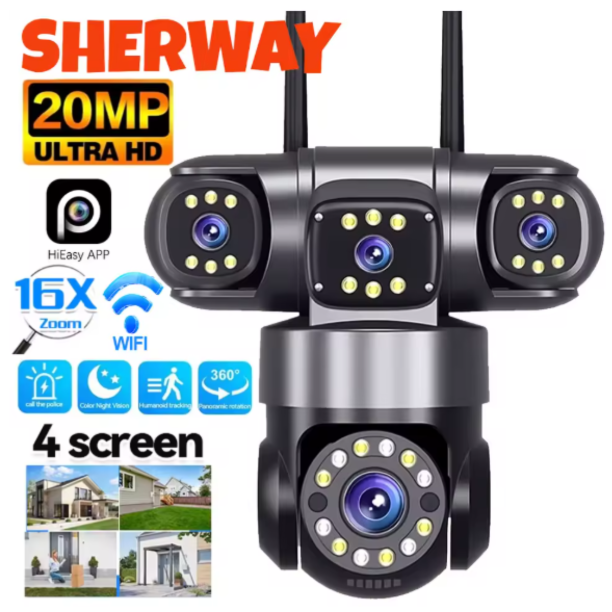 La cámara Sherway 20MP Ultra HD te ofrece una visión panorámica real de 360°, con resolución 20 megapíxeles y conexión WiFi estable. Su sistema inteligente detecta movimiento humano, graba en tiempo real y te notifica directamente en tu celular a través de la App HiEasy, disponible para Android y iPhone.