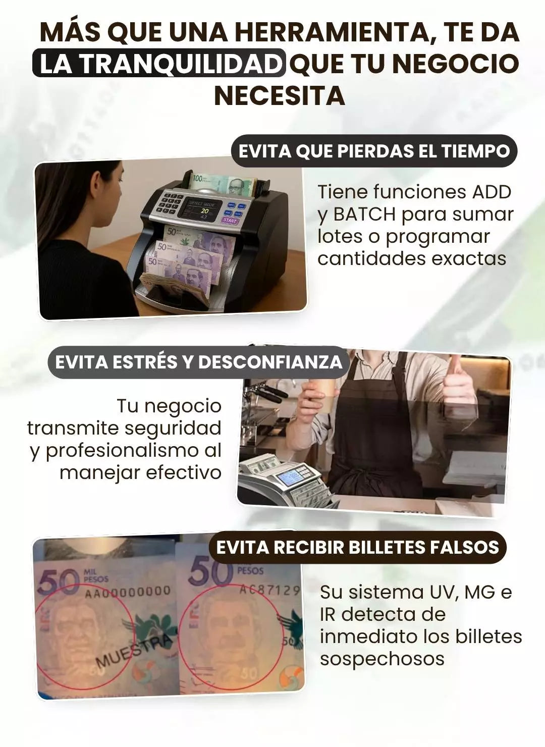 ¿Detecta billetes falsos?