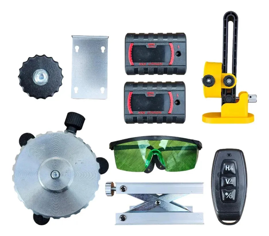 Lo que incluye: Nivel láser 16 líneas + 2 Baterías litio recargables + Cargador + Control remoto + Receptor láser + Trípode extensible + Soporte magnético + Base giratoria + Gafas verdes + Placa objetivo + Maletín rígido + Manual.